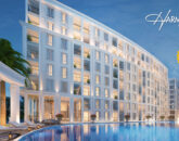 Harmonia consists of 4 buildings with 8 floors, each surrounded by pools, fountains, walkways, and gardens. Underground parking provides easy access to all the buildings and facilities such as restaurants, cafes, massage shops, and a rooftop bar with a garden landscape.