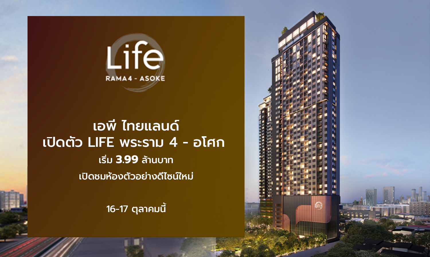 Life Rama 4 – Asoke is a 39-storey high-rise condominium project located in Rama 4 Road, Khlong ToeiKhlong ToeiBangkok. There are 633 residential units built on 5-2-7.5 rai of land. The project was developed by AP (Thailand) and is scheduled to be completed in 2024.